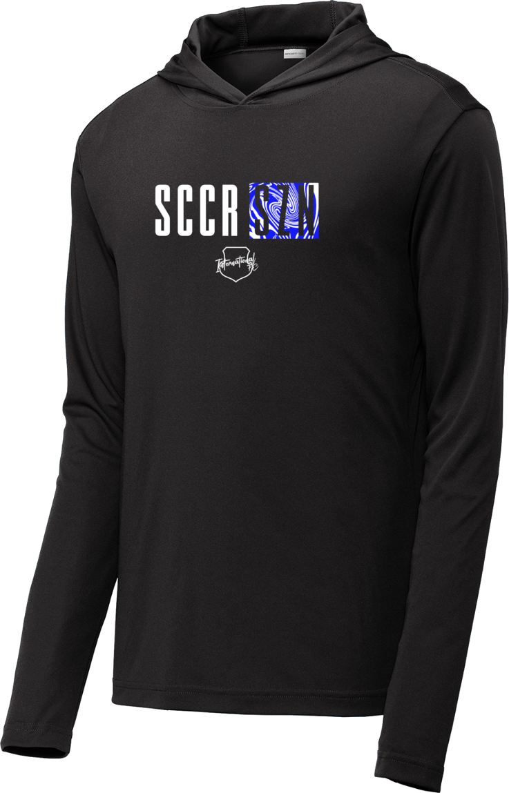 This lightweight hooded pullover locks in color and wicks moisture. It’s versatile enough for year-round wear.